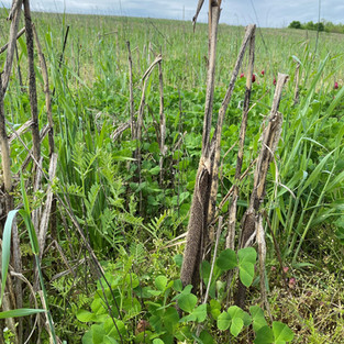 One of my favorite practices that can support pollinators is a good Cover Crop mix. Indiana cash crops do not often provide a healthy habitat and food source for pollinators. Selecting cover crop species such as clovers (crimson clover is a favorite), sunflowers, buckwheat, vetch and many others are sure to draw in lots of happy little pollinators by providing food and habitat above the soil surface. Below the surface, the roots of these plants are serving multiple other functions. They are building soil health by stabilizing the soil from erosion, forming soil aggregates, increasing organic matter and water holding capacity. The plant diversity supports an environment for biodiversity. Nodules on the legumes busy themselves fixing nitrogen (at no additional charge to you!) for you next nitrogen loving crop. I have heard the sunflowers can scavenge zinc, one of those important micronutrients.